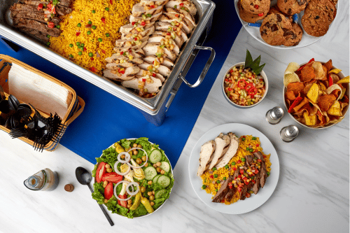 We often get calls from stressed office managers who need to feed a team of 50 on short notice. We guide them through the process, suggesting menu pairings that work well together. Maybe it’s a Fajita Bar for a team-building lunch or a light, healthy spread for a working meeting.